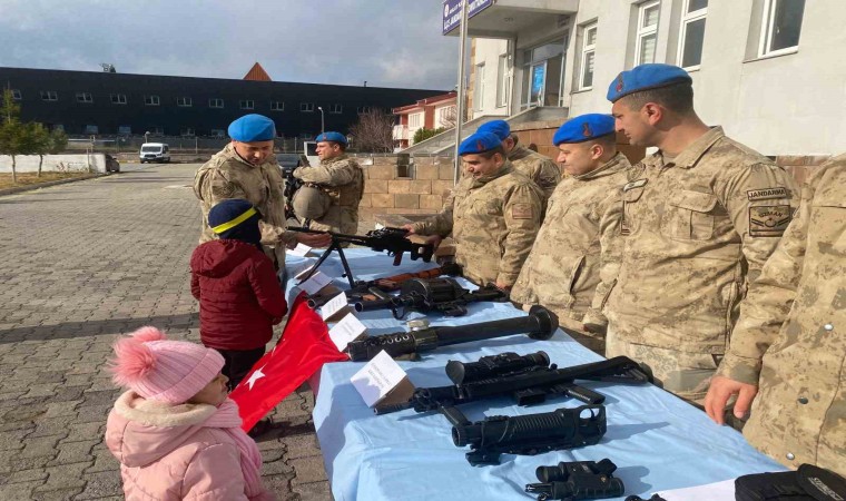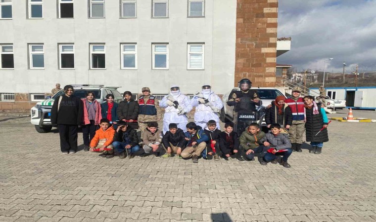 Bitlis’in Ahlat ilçesindeki jandarma komutanlığına davet edilen çocuklara kullanılan malzemelerin tanıtımı yapıldı. Bitlis Valiliğinden yapılan açıklamada, “Bitlis İl Jandarma Komutanlığı unsurlarınca, ‘Güvenlik Birimleri Öğrenci Buluşması’ kapsamında sorumluluk bölgemizde bulunan okullardaki öğrenciler, Ahlat İlçe Jandarma Komutanlığına davet edilerek çeşitli faaliyetlerle birlikte jandarma teşkilatının tanıtımı yapılmış olup öğrenciler bilgilendirilmiştir” denildi.