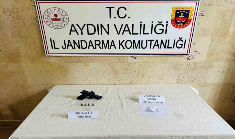 Aydın’ın Germencik ilçesinde jandarma ekiplerince durdurulan şüphelinin üzerinde ruhsatsız silah ve uyuşturucu ele geçirildi.