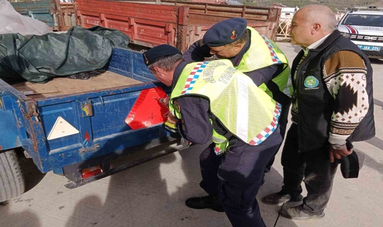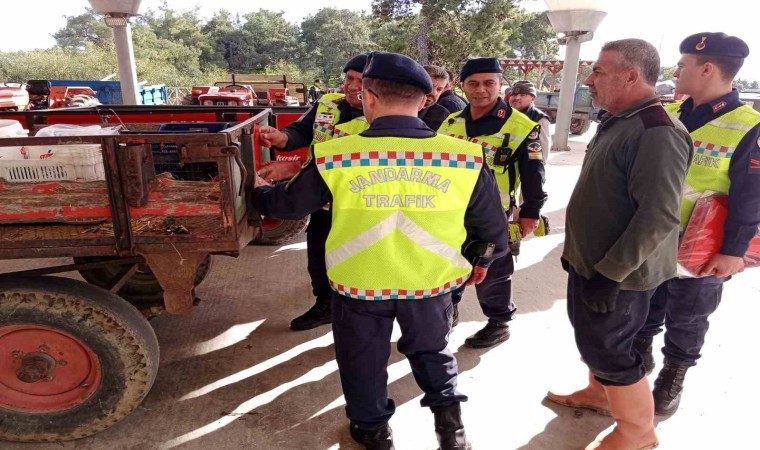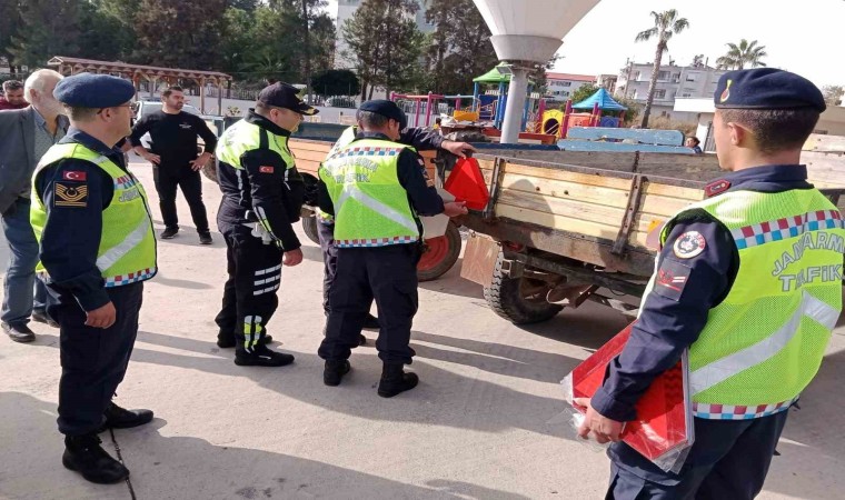 Traktör sürücülerine yönelik trafik eğitimlerini sürdüren Manavgat’ta İlçe Jandarma Komutanlığı Trafik Timleri ‘Reflektör Tak Görünür Ol Kampanyası’ Kapsamında Taşağıl Mahallesinde traktörlerin römorklarına reflektör taktı.