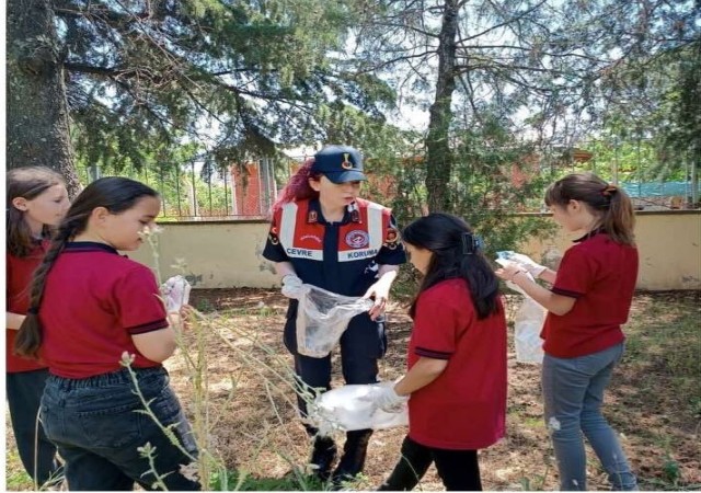 Jandarma ve öğrencilerden çevre temizliği
