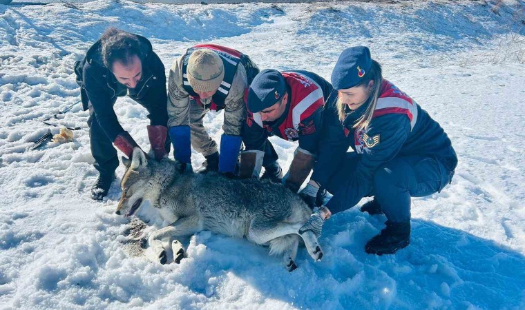 Erzurum’da Jandarma ekiplerince yaralı olarak bulunan kurt, Doğa Koruma ve Milli Parklar Müdürlüğüne teslim edildi.