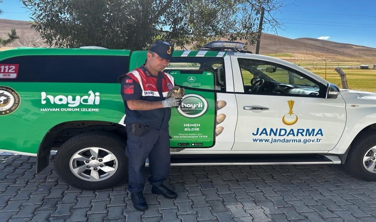Erzurum İl Jandarma Komutanlığı emrinde görevli Çevre, Doğa ve Hayvanları Koruma Timi tarafından yaralı olarak bulunan yavru Doğan koruma altına alındı.