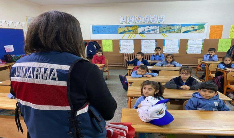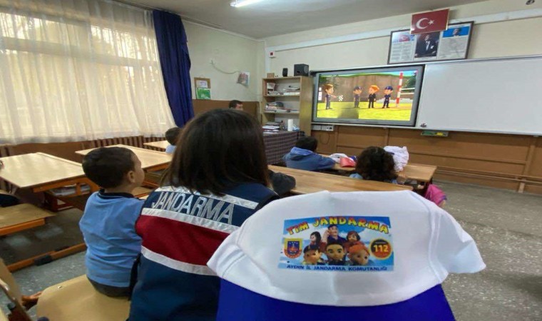Aydın’ın Efeler ilçesinde ilkokul öğrencileriyle bir araya gelen jandarma ekipleri, 128 öğrenciye suçtan korunma, güvenli internet kullanımı gibi konularda eğitim verdi.