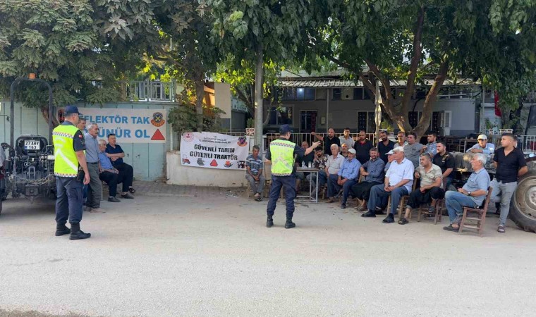 Gaziantep’te jandarma ekiplerince 60 traktör sürücüsüne robs demiri kullanımının önemi ve traktörlerde kullanılacak aydınlatmalar ile genel trafik güvenliği eğitimi verildi.