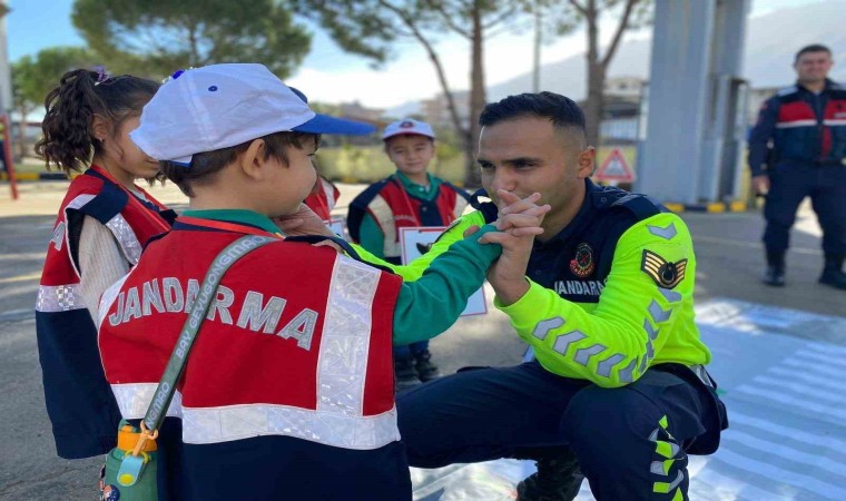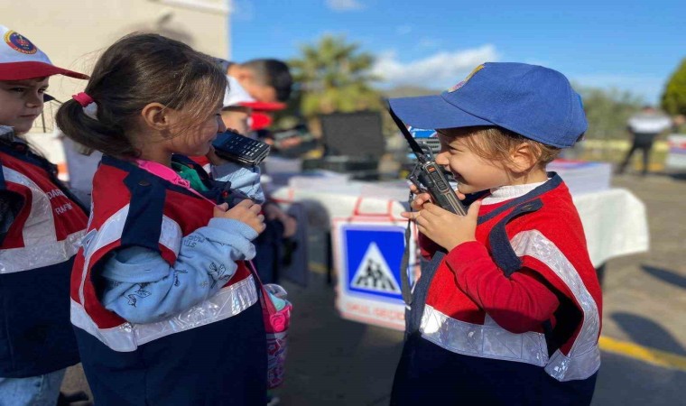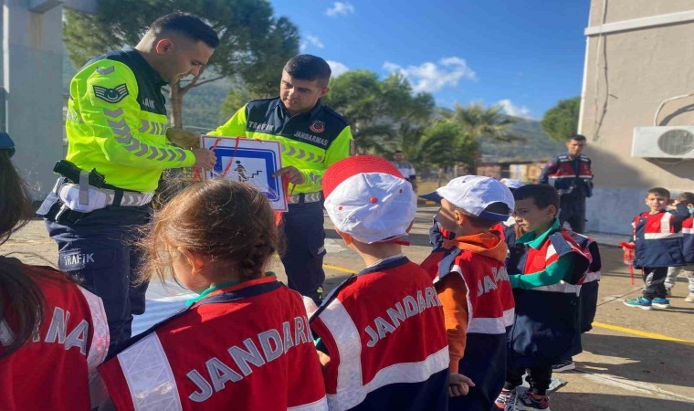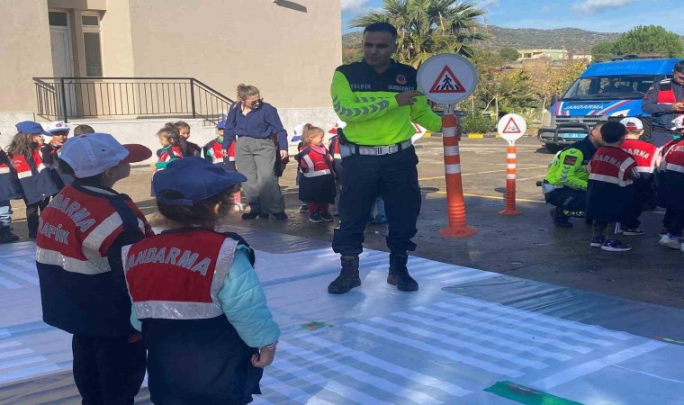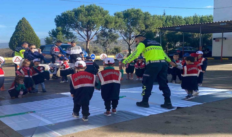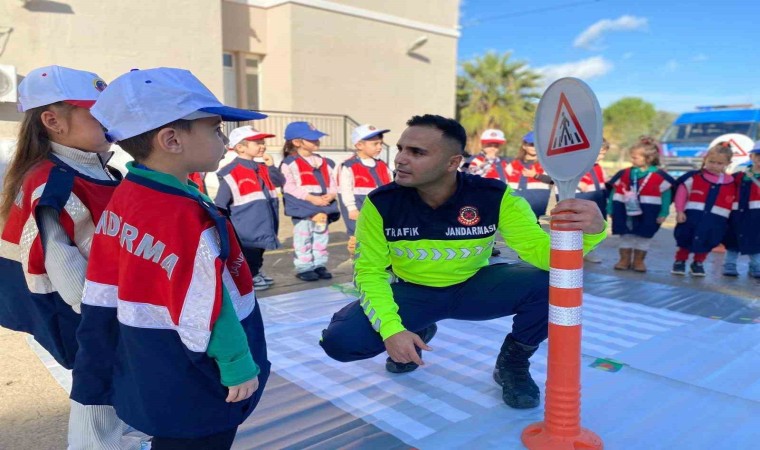 Aydın’ın Çine ilçesinde jandarma ekipleri anaokulu öğrenci ve öğretmenlerini çeşitli trafik konuları hakkında bilgilendirdi.