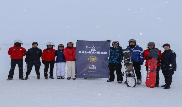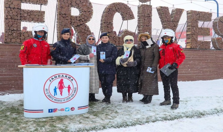 Kayseri’de jandarma ekipleri tarafından Erciyes’e kayak yapmaya gelenlere KADES ve Kadına El Kal-Ka-Maz mottosu hakkında bilgilendirme faaliyeti yapıldı.