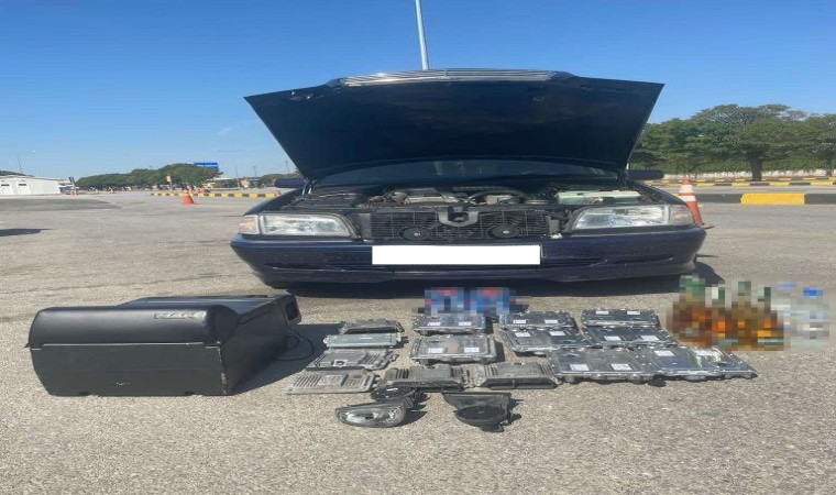 Otomobilde yapılan aramalarda, bagaj bölümünde ve motor kaput bölümde gizlenmiş gümrük kaçağı olduğu tespit edilen 13 adet araç beyni, 1 adet araç buzdolabı, 2 adet ayna mekanizması ve 7 litre alkollü içecek ele geçirildi.