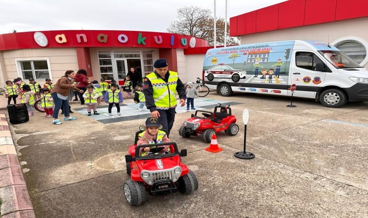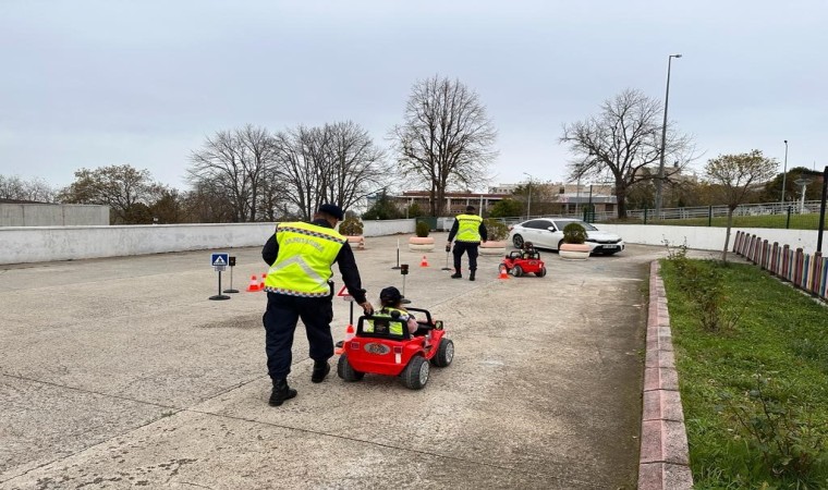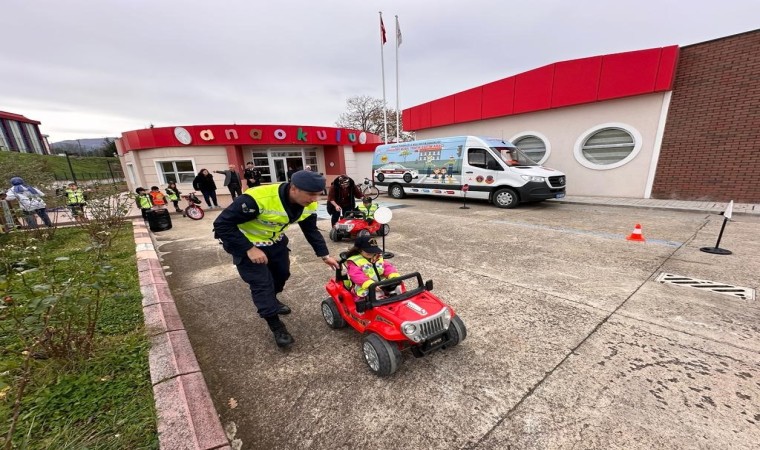 Samsun İl Jandarma Komutanlığı ekipleri, mobil trafik eğitim aracı ile miniklere trafik eğitimi verdi.