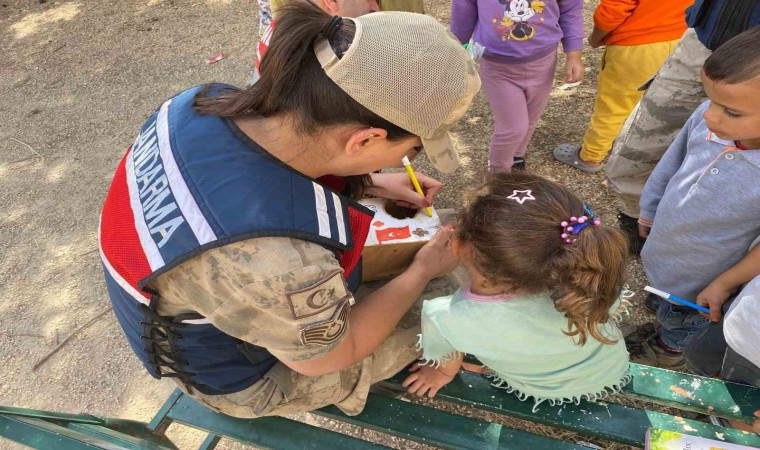Eğitim sonunda öğrencilere Jandarma dergisi, boyama kitabı ve çeşitli hediyeler dağıtıldı.