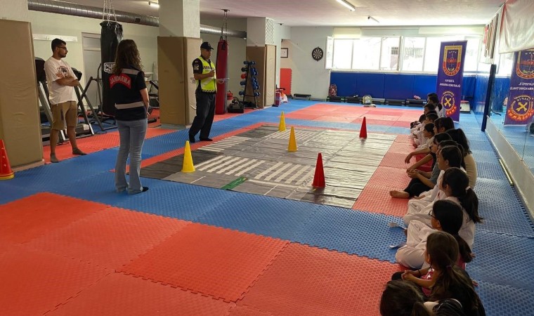 Trafik Şube Müdürlüğü ve Aile İçi Şiddetle Mücadele ve Çocuk Kısım Amirliği ekipleri Develi ilçesinde bulunan taekwondo kursunu ziyaret etti. Ekipler tarafından kursta bulunan öğrencilere taekwondo eğitimi ile birlikte Genel Trafik Kuralları konusunda da eğitim ve bilgilendirme faaliyeti düzenlendi.
