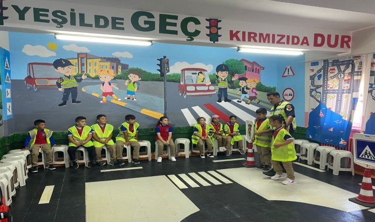 Aksaray’da trafik jandarması okul okul gezerek “Güvenli Okul, Güvenli Gelecek” projesi çerçevesinde öğrencilere trafik eğitimi veriyor.