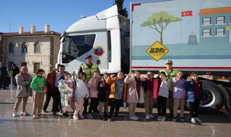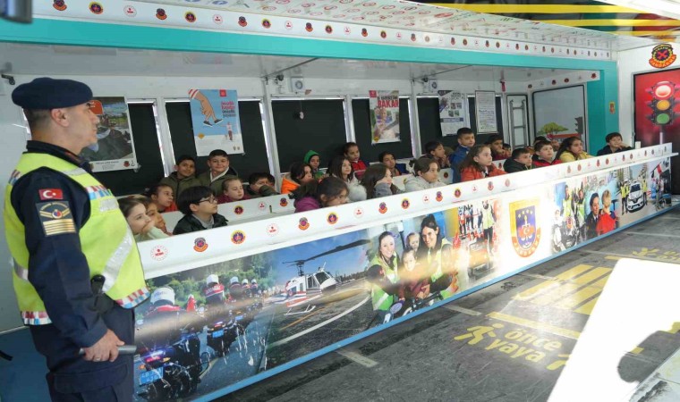 Kilis’te jandarmadan tarafından öğrencilere mobil trafik eğitim tırı ile trafik güvenliği eğitimi verildi.