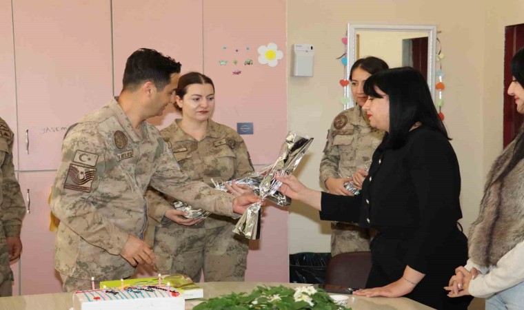 Hakkari İl Jandarma Komutanlığı ekipleri, merkez Çimenli köyü Borsa İstanbul İlköğretim Okulundaki öğretmenleri ziyaret ederek kendilerine karanfil takdim etti.