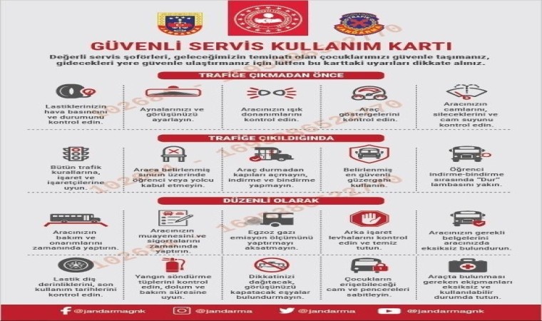 Yapılan denetimlerde, 220 vatandaş ve servis araç sürücüsüne Jandarma Genel Komutanlığı tarafından hazırlanan Güvenli Servis Kullanım Kartı dağıtıldı.
