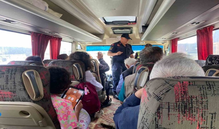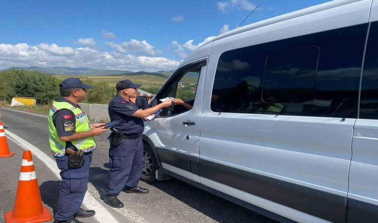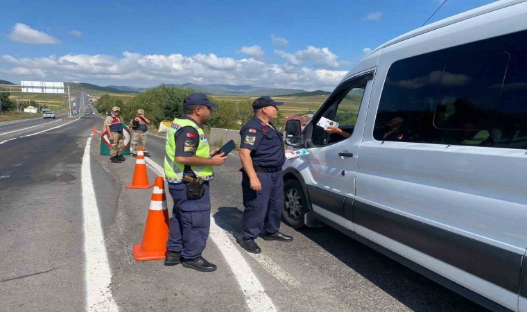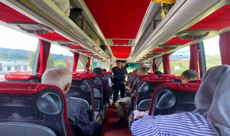 Ardahan’da jandarma ekiplerince şehirlerarası yolcu otobüslerinde emniyet kemeri kontrolü yapıldı.