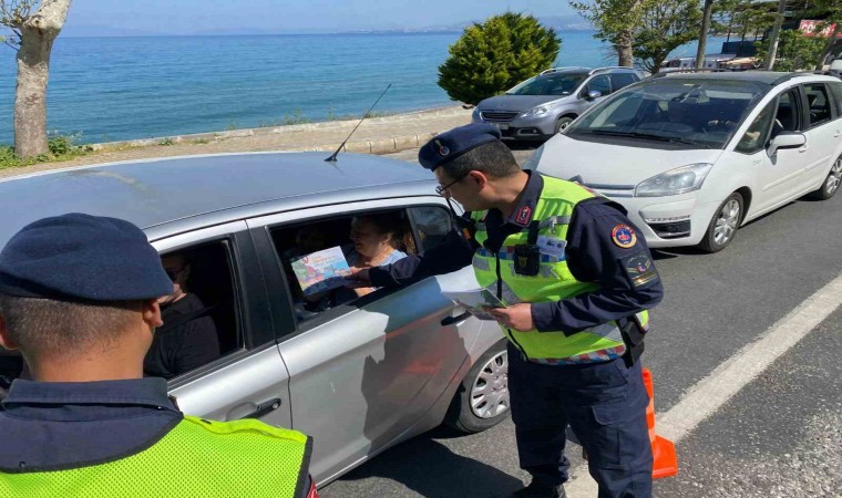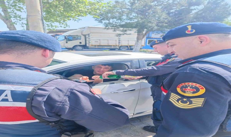 Ramazan Bayramı tatili ile birlikte trafik yoğunluğu da yaşanmaya başlarken Aydın’da jandarma ekipleri karayolları üzerinde yaptıkları denetimlerde sürücülere bayram şekeri ikram ederek, trafik kurallarına uymaları konusunda hatırlatmalarda bulundu.