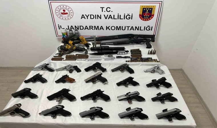 Aydın İl Jandarma Komutanlığı Kaçakçılık ve Organize Suçlarla Mücadele Şube Müdürlüğü ve Söke İlçe Jandarma Komutanlığı ekiplerince ‘Tabanca İstihsali ve Silah Ticareti’ yapan şahıslara yönelik koordineli çalışma gerçekleştirildi. Edinilen bilgiye göre Söke ilçesinde M.S.A. ve M.B.D. isimli şahıslara ait ikametlere operasyon düzenlendi. Yapılan baskında ev ve eklentilerde yapılan aramada 20 adet tabanca, 65 adet ağzı açılmış namlu, 33 adet tabanca yedek parçası, 2 adet otomatik pompalı tüfek, 101 adet farklı çaplarda tabanca fişeği, 51 adet çeşitli tabanca parça ve tertibatı ve 30 adet silah tamir ve yapımında kullanılan alet edevat ele geçirildi. Yakalanarak gözaltına alınan şüpheli şahıslar, sevk edildikleri adli makamlarca tutuklanarak cezaevine gönderildi.