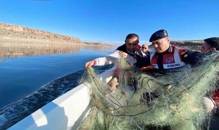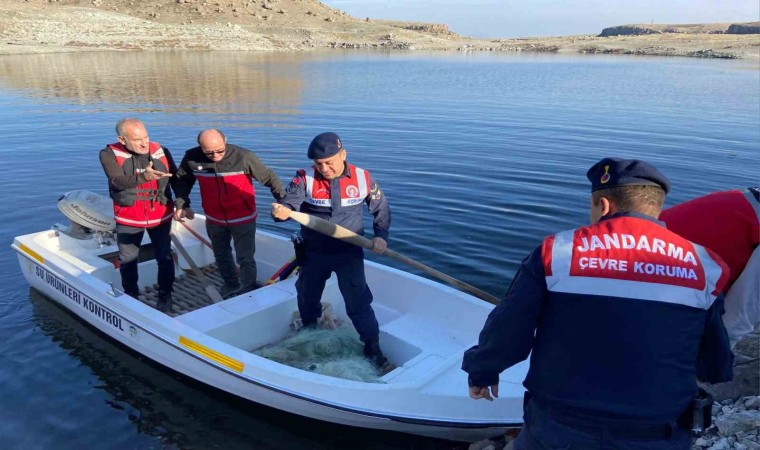 Aksaray genelinde bulunan baraj ve göletlerde kaçak ve yasak yöntemler ile avlanmanın engellemesine yönelik çalışmalar yapan İl Jandarma Komutanlığı Çevre, Doğa ve Hayvanları Koruma Tim Komutanlığı ekipleri, tekneyle açıldıkları baraj ve göletlerde devriye atarak kaçak avcıların izini sürüyor. Aksaray’ın içme su ihtiyacını karşıladığı Mamasın Barajı başta olmak üzere ilçe, belde ve köylerde bulunan göletlerde görev alan ekipler tekneyle açılıyor. Bir yandan devriye faaliyeti yürüten jandarma ekipleri öte yandan da yasal olmayan yöntemlerle kaçak avcılık yapmak isteyen avcıların suya attığı ağları tespit ederek imha ediyor. Yapılan kontrol ve denetimler esnasında yaklaşık 500 metre uzunluğunda sahipsiz ağ ele geçirilirken ağ imha edilmek üzere Tarım ve Orman İl Müdürlüğü ekipleri teslim edildi.