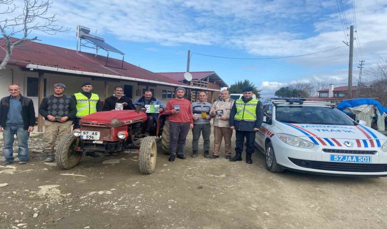 Sinop’ta, trafik kazalarının önüne geçmek amacıyla başlatılan “Reflektör Tak, Görünür Ol Projesi" kapsamında traktör sahiplerine reflektör hediye edildi.