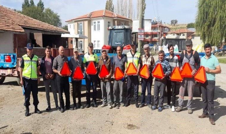 Akyurt İlçe Jandarma Komutanlığı sorumluluk bölgesinde bulunan Çardakbağı Mahallesi’ndeki traktör sürücülerine yönelik trafik kazalarına karşı alınması gereken tedbirler konusunda seminer verildi. Seminer sonunda ise 20 adet üçgen reflektör römorkların arka tarafına takılması için traktör sürücülerine dağıtıldı.