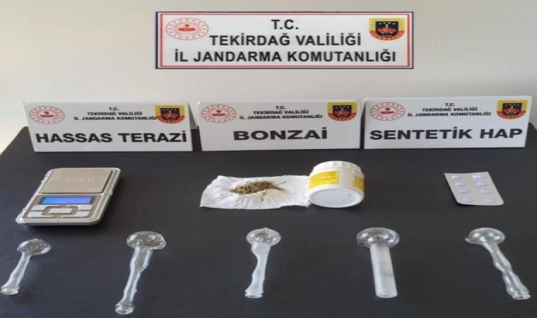 Süleymanpaşa ilçesi Çınarlı Mahallesi’nde Ü.T. isimli şahsın ikametinde uyuşturucu madde ticareti yaptığının tespiti üzerine, Tekirdağ İl Jandarma Komutanlığı unsurlarınca yapılan aramada, 10 gram bonzai, 8 adet sentetik hap, 5 adet uyuşturucu içme aparatı ve 1 adet hassas terazi ele geçirildi. Olayla ilgili şüpheli M.H. gözaltına alındı.