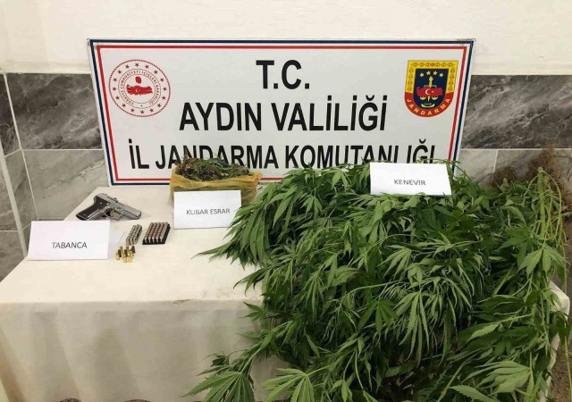 Operasyon bilgilerine göre, ekipler Efeler ilçesinde uyuşturucu madde imal ve satışı yaptığı tespit edilen bir şüphelinin ikametini belirledi. Hızla harekete geçen jandarma ekipleri, belirlenen adrese baskın düzenledi. Operasyon sırasında 1 şüpheli şahıs yakalanırken, evde yapılan aramalarda bin 500 gram kubar esrar maddesi, 40 kök kenevir bitkisi, 1 tabanca, şarjör ve 11 adet fişek ele geçirildi. Gözaltına alınan şüpheli hakkında adli işlem başlatıldı.