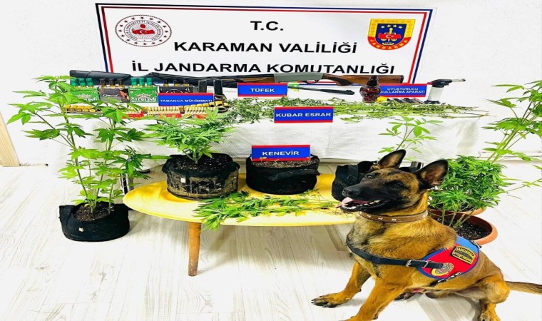 Karaman’da jandarmanın düzenlediği uyuşturucu operasyonunda narkotik köpeğiyle arama yapılan bir evde uyuşturucu ile ruhsatsız silah ele geçirildi. Evde bunulan 3 kişi gözaltına alındı.