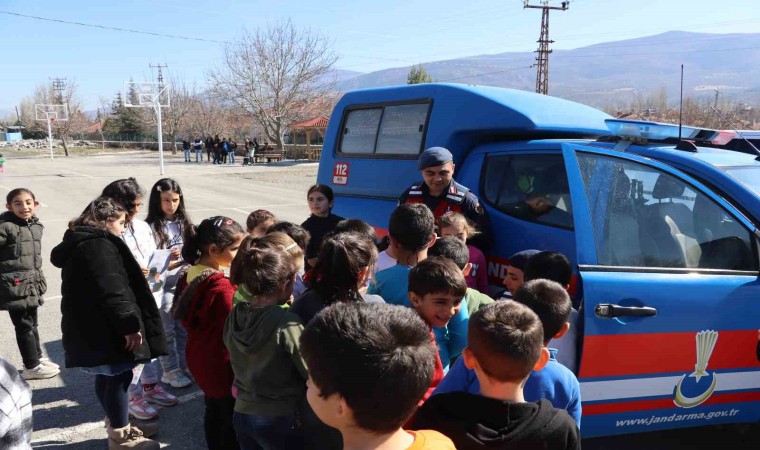 Çorum’da köy köy gezen jandarma ekipleri çocukları ve ailelerini madde bağımlılığı, kadına yönelik şiddet, çevre sorunları ve trafik konularında bilgilendiriyor.