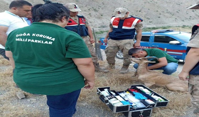 HAKKARİ (İHA) – Hakkari’de yaralı halede bulunan dağ keçisi tedavisi yapılmak üzere Van’a sevk edildi.