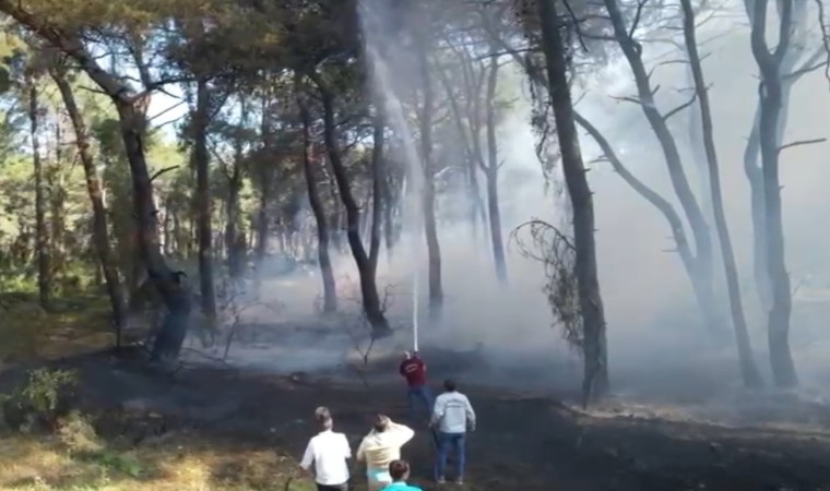 Antalya’nın Manavgat ilçesinde jandarma ekiplerinin dron ile yaptığı denetimde ormanlık alandan duman çıktığının fark edilmesi üzerine yangın, geniş alana sıçramadan itfaiye ve orman ekiplerince söndürüldü.