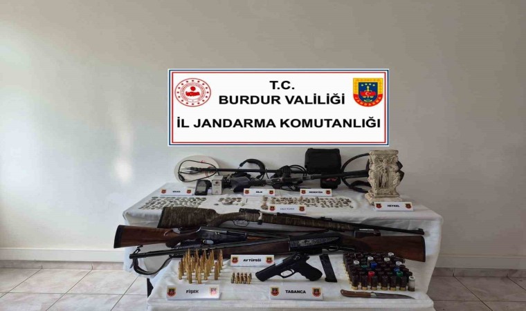 Burdur’da jandarma ekiplerinin bir eve düzenlediği operasyonda çok sayıda tarihi eser ve silah ele geçirilirken ev sahibi hakkında adli işlem başlatıldı.