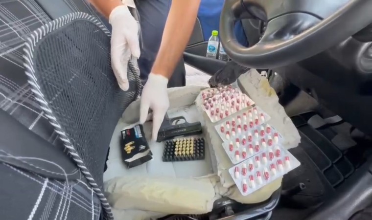 Ulaşımda 43 ilin geçiş güzergahı "kilit kavşak" Kırıkkale’de, İl Jandarma Komutanlığı ekipleri tarafından vatandaşların can ve mal güvenliğini sağlamak maksadıyla denetimler sürüyor. Ankara-Kırıkkale D.200 kara yolu üzerindeki Yahşihan trafik kontrol noktasında denetim yapan jandarma, şüphe üzerine durdurduğu otomobilde arama yaptı. Ekipler, otomobilin sürücü koltuğunda ruhsatsız tabanca, arka yolcu koltuğunda da 83 adet uyuşturucu hap ele geçirdi.