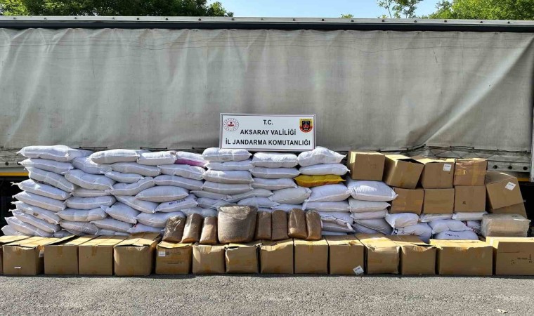 Aksaray’da kargo firmasına ait tıra operasyon düzenleyen jandarma, tır kasasında 6 ton 750 kilo kaçak tütün ele geçirdi.