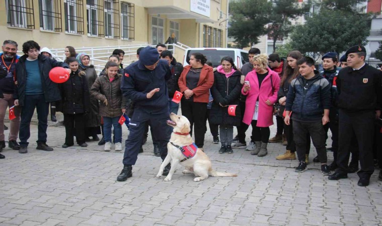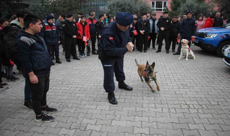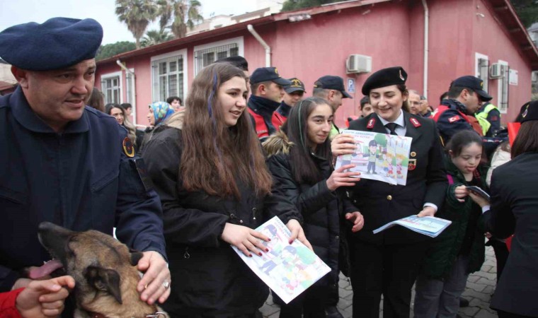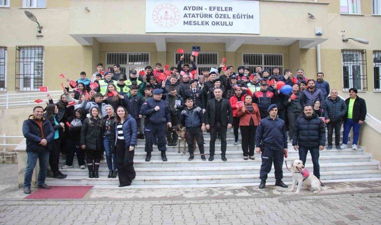 Aydın İl Jandarma Komutanlığı ekipleri Efeler ilçesi Orta Mahalle’de faaliyet gösteren Atatürk Özel Eğitim Meslek Okulu’nda eğitim gören özel çocuklarla bir araya geldi. İlk olarak jandarma motosikletlerine binip kasklarını takan öğrenciler okul içerisinde tur atarken, jandarma araçlarına binen öğrenciler de siren çalıp anons etti. Anonslarında ’jandarmayı çok seviyoruz, okulumuza geldikleri için çok mutlu olduk, iyi ki varlar’ gibi cümlelerle jandarma ekiplerine olan sevgilerini gösteren öğrenciler jandarmanın faaliyetlerini dinledi. Son olarak jandarma bomba arama ve yangın tespit köpekleri ile bir araya gelen öğrenciler köpeklerin gösterilerini ilgiyle izledi. Etkinlik sonunda öğrencilere Türk Bayrağı, balon ve içerisinde trafik kurallarının bulunduğu boyama kitabı hediye edildi.
