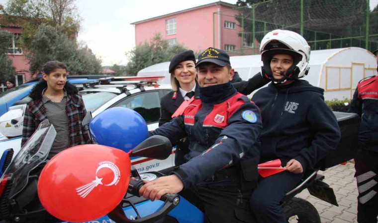 Aydın İl Jandarma Komutanlığı ekipleri özel çocuklarla bir araya geldi. Düzenlenen etkinlikte jandarma motosikletlerine binen çocuklar siren çalarak, araçlar ile tur attı.