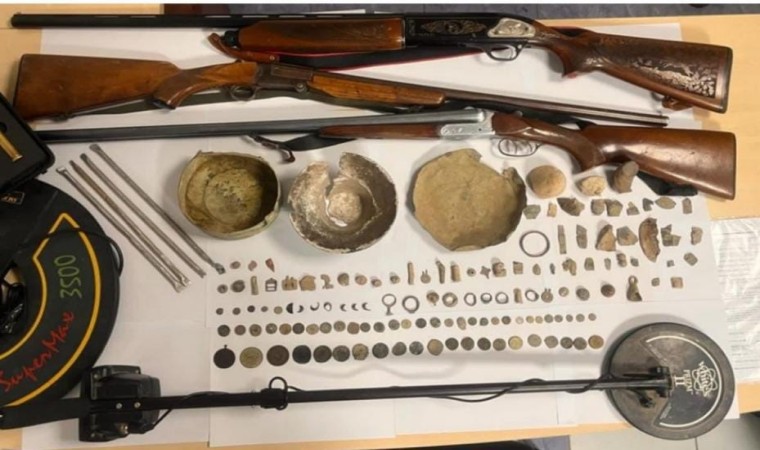 Denizli’nin Buldan ilçesinde İl Jandarma Komutanlığı ve İlçe Jandarma Komutanlığına bağlı ekipleri takibe aldıkları Ş.B’nin Türlübey Mahallesinde bulunan ev ve işyerine operasyon düzenlendi. Yapılan aramalarda şahsa ait ev ve işyerinde 63 adet sikke, Roma ve Bizans dönemine ait 72 adet tarihi obje, 2 adet dedektör ve 3 adet av tüfeği ele geçirildi. Ş.B’nin gözaltına alındığı ve jandarmada işlemlerinin sürdüğü öğrenildi.
