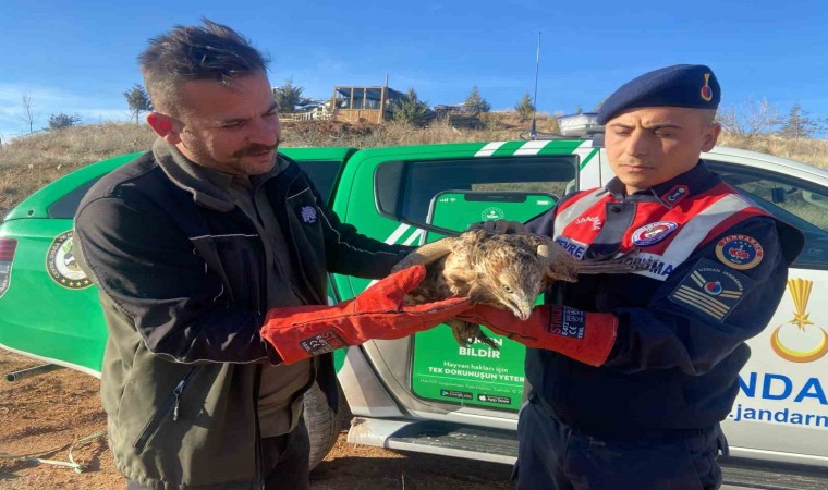 Aksaray’da jandarma ekipleri tarafından yaralı halde bulunan kızıl şahin tedavi altına alındı.