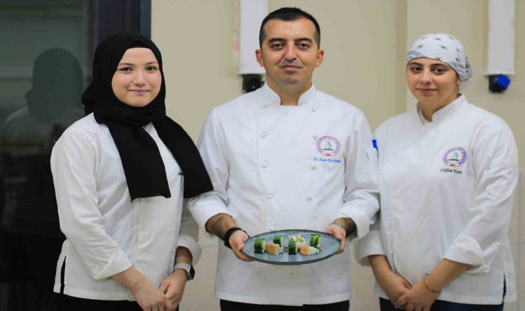Gülfem Kuru ve Şulenur Böyükaslan adındaki öğrenciler, sarmaların yan ürünü olan lahanaları kullanarak, Doktor öğretim üyesi İhsan Kazkondu’nun önerisiyle suşi yapmaya karar verdiler. Türk mutfak kültürünün bir parçası olan baldo pirinç, mancar, havuç ve salatalığın kullanıldığı bu özel suşi, hem vegan hem de sağlık dostu bir seçenek olarak dikkat çekti.