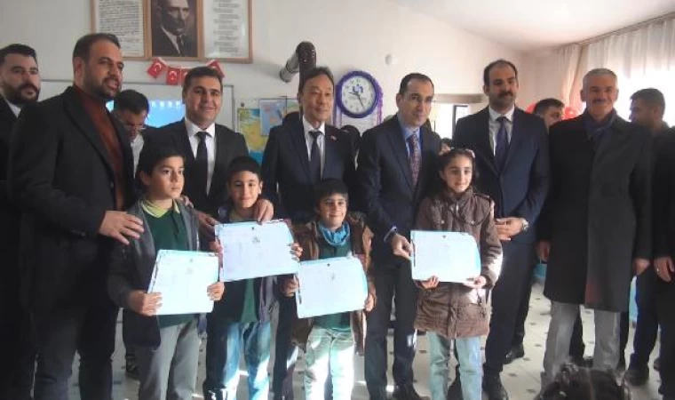 Mehmet Halis NAYIFOĞLU/MİDYAT (Mardin), (DHA)- MARDİN’in Midyat ilçesine bağlı kırsal Yemişli Mahallesi'nde Japonya'nın Ankara Büyükelçiliği tarafından bakım ve onarımı yapılan Yemişli Şehit Selahattin Küçükaslan İlkokulu’nda tören düzenlendi. Japonya'nın Ankara Büyükelçisi Katsumata Takahiko'nun da katıldığı törende öğrencilere karneleri verildi.