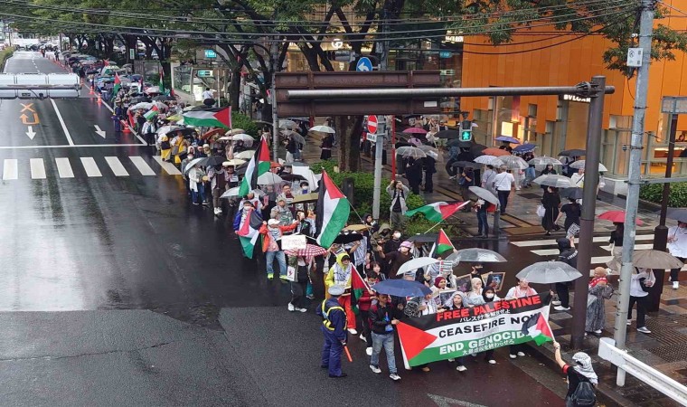 İsrail’in Gazze’de yürüttüğü katliamlar 1. yılına yaklaşırken, Japonya’da Filistin’e destek gösterisi düzenlendi. "Filistin İçin Küresel Eylem Günü" kapsamında Tokyo’da bir araya gelen yüzlerce gösterici, İsrail’in soykırımına tepki göstermek için Shibuya semtinde protesto yürüyüşü gerçekleştirdi. "Nehirden denize özgür Filistin", "Soykırımı durdurun", "İşgale hayır" ve "Acil ateşkeş" gibi sloganlar atan göstericiler, İsrail’e saldırılarını durdurma, uluslararası topluma ise harekete geçme çağrısı yaptı.