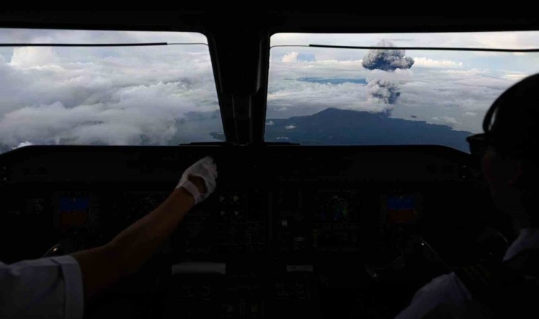 Japonya’daki Sakurajima Yanardağı’nda meydana gelen patlamanın ardından ortaya çıkan ve 4 bin 500 metre yüksekliğe ulaşan duman ile volkanik kül, bir yolcu uçağının kokpitinden görüntülendi.