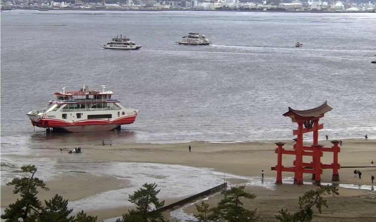 Japonya’da bir feribot UNESCO dünya mirası listesinde yer alan Itsukuşima tapınağı açıklarında karaya oturdu.