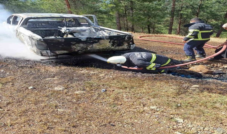Yangın, Hassa ilçesi Tepebaşı Mahallesi’nde ormanlık alanda meydana geldi. Baz istasyonuna kontrol amaçlı çıkan 34 CEJ 345 plakalı pikabın bagajındaki jeneratör yanmaya başladı. Jeneratörden başlayan yangının aracı sarmasıyla pikap yanarak kullanılmaz hale geldi.
