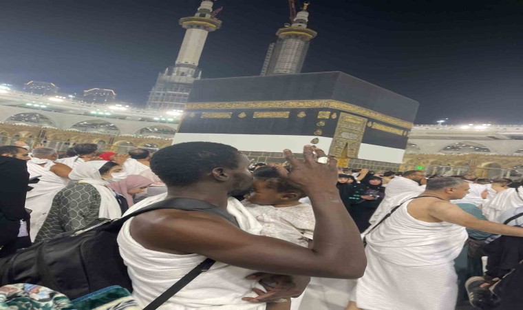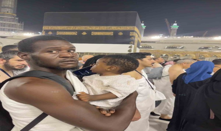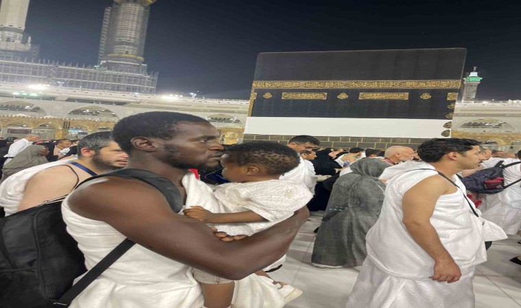 Kutsal topraklara ailesiyle birlikte gelen çocuklar baba kucağında Kabe’yi tavaf ederek gözlerini dünyaya açıyor.
