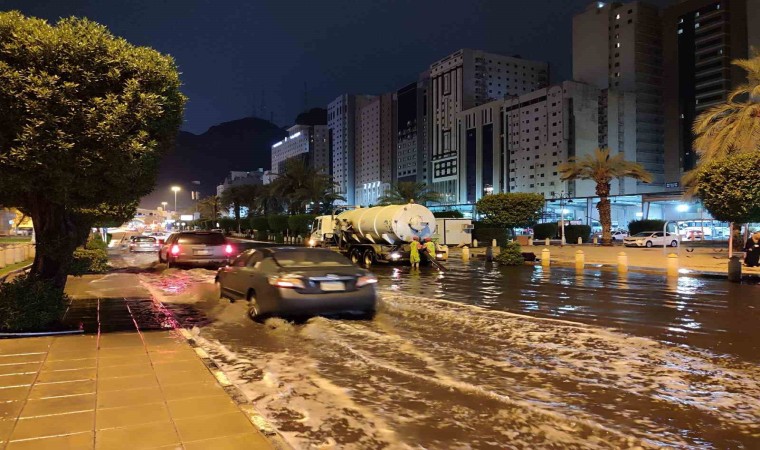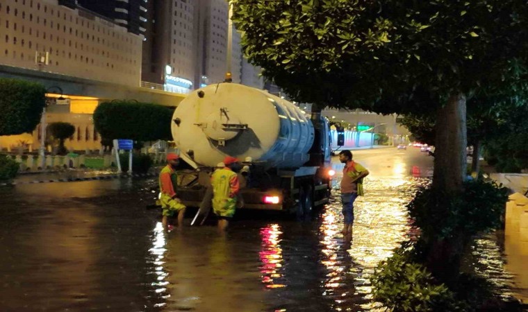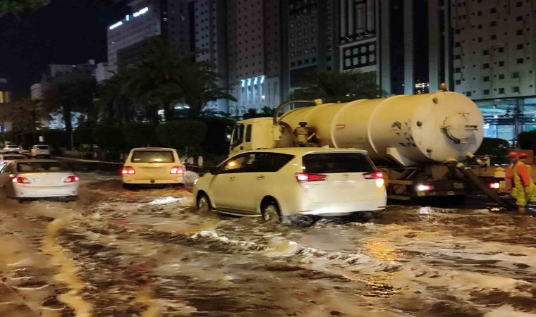 Mekke kentini şiddetli yağış ve fırtına vurdu. Kabe’de ibadet eden çoğu Müslüman, olumsuz hava koşullarına rağmen ibadetlerine devam etti. Fırtınanın şiddetli ile bazı kişilerin yürümekte zorlandığı görülürken, çok sayıda güvenlik bariyeri ise devrildi.