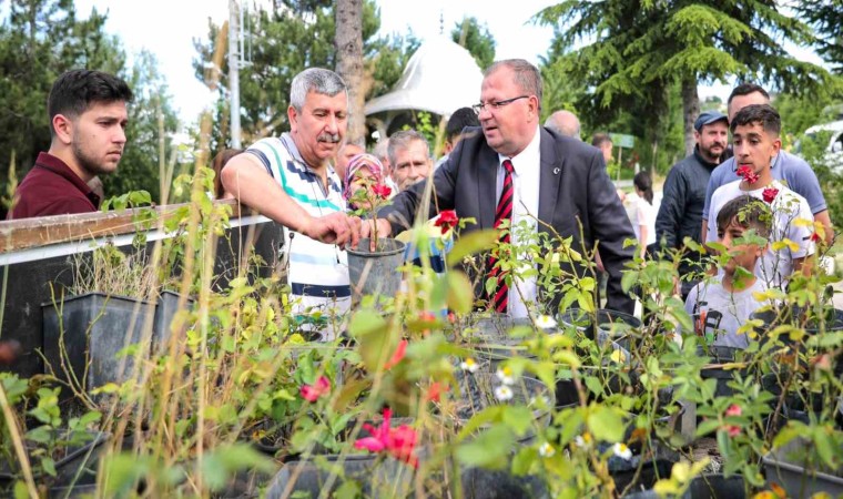Kabir ziyareti için mezarlığa gelen vatandaşlara ücretsiz gül fidanı ve çiçek