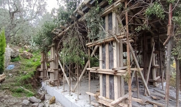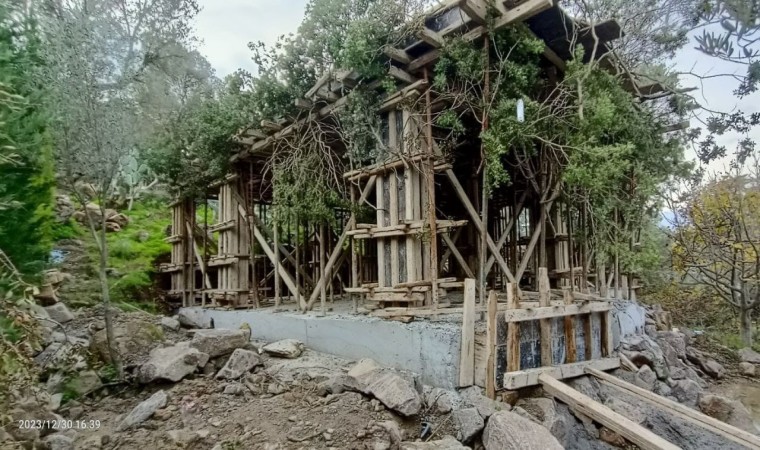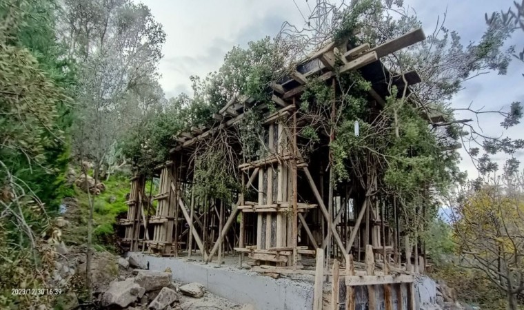 Bodrum Belediye Başkanı Ahmet Aras’ın öncülüğünde, 2019 yılından bu yana ilçe genelinde sürdürülen kaçak yapılaşma mücadele çalışmaları aralıksız devam ederken, Gündoğan Mahallesi’nde yapılan kaçak inşaatın ağaç dallarıyla gizlenmeye çalışılması hayrete düşürdü.