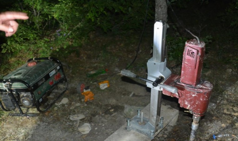 Şahıslara ait araçta yapılan aramalarda, 1 adet tabanca, 1 adet şarjör, 6 adet mermi, 2 adet tüfek, 44 adet av tüfeği mermisi, 1 adet jeneratör, 1 adet karot makinası, 1 adet plastik kova, 1 adet kürek, 3 adet boru anahtarı ve muhtelif kazı malzemeleri ele geçirildi.