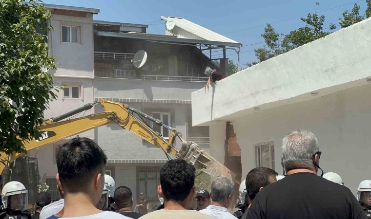 Bina sahiplerinin kaçak olarak yaptığı yapı daha önce 4 kere yıkıldı. "5. defa yıkılmasın" diye bina sahipleri çatıya çıkarak direndi. Zaman zaman etrafa bıçak sallayan şahıs, polisin ikna çabaları sonrası aşağıya indi. Diğer aile üyeleri ise ikna edilirken kaçak yapının bir bölümü yıkıldı. Olayların daha fazla büyümemesi için süre verildi.