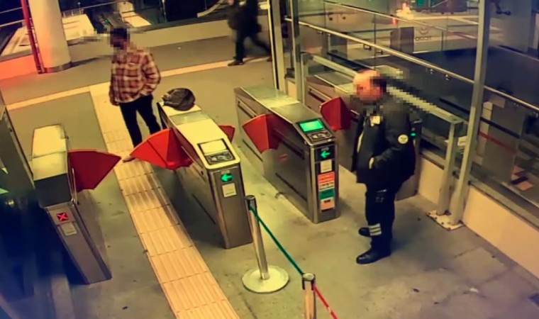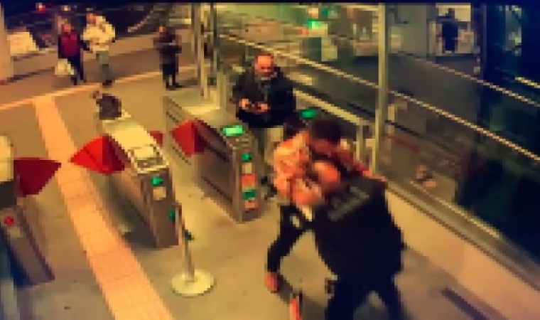 Kadıköy’de Marmaray’da güvenlik görevlisi, tartıştığı alkollü şahsı silahla bacağından yaraladı. Olay anı güvenlik kamerasına yansıdı.